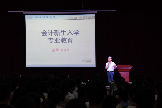 8月26日下午,永利集团3044官网欢迎您在大学生活动中心三号厅开展新生入学专业教育。学院党委书记张霖、院长袁振兴、党委副书记程丽梅、教学副院长杨国莉、财务管理系主任和丽芬、审计系主任王砚书、会计系主任赵翠出席了本次活动。教务秘书蒋琳、新生辅导员姜丙毅、孙轲,以及2019级全体新生参加。本次活动由程丽梅主持。