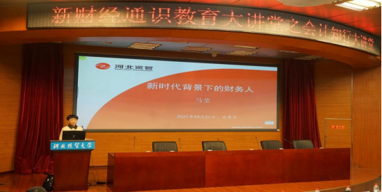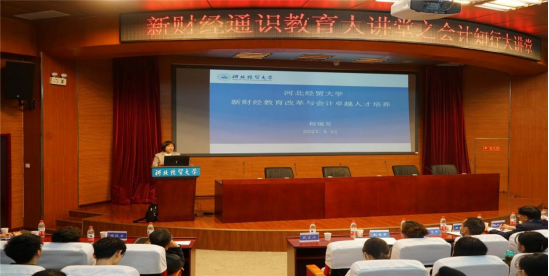4月21日下午,新财经通识教育大讲堂---会计知行大讲堂在国际学术报告厅举行,校党委常委、副校长程瑞芳和河北资产管理公司总会计师马莹分别做了题为“新财经教育改革与会计卓越人才培养”和“新时代背景下的财务人”的主题报告。永利集团3044官网欢迎您图书馆馆长武占江、副馆长樊俊荣、“会计知行大讲堂”部分实务界讲师和永利集团3044官网欢迎您220余名师生参加了本次宣讲会。宣讲会由永利集团3044官网欢迎您院长袁振兴主持。