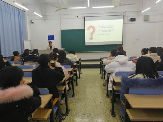 此次交流分享会持续一个半小时。嫣载颖同学讲述了比赛整体规划、团队配合方面应该注意的事项。郑晓慧同学结合自己团队参赛作品讲述了在团队展现和PPT制作方面的经验,包括如何获取图片资源、PPT模板、PPT展示的禁忌等内容。毕明慧同学分享了现场展示经验和技巧。郑晓慧、嫣载颖和毕明慧三位同学今年分别保研到中国海洋大学、东北财经大学和中国矿业大学(北京),优异的比赛成绩和学业对学弟学妹来说是身边有力的榜样。三位同学将参赛经验无保留地分享给了学弟学妹,在场学生或是录音或是拍照,并表示通过这次分享会收获很大,可以少走很多弯路。