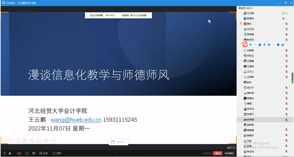 2022年11月7日下午,由教学评估与教师教学发展中心主办,永利集团3044官网欢迎您承办的教学沙龙活动,在线上顺利开展。会计系主任王云鹏老师的教学沙龙主题是“漫谈信息化教学与师德师风”。来自永利集团3044官网欢迎您、财政税务学院等30多名教师参加了教学沙龙活动,活动由杨国莉副院长主持。