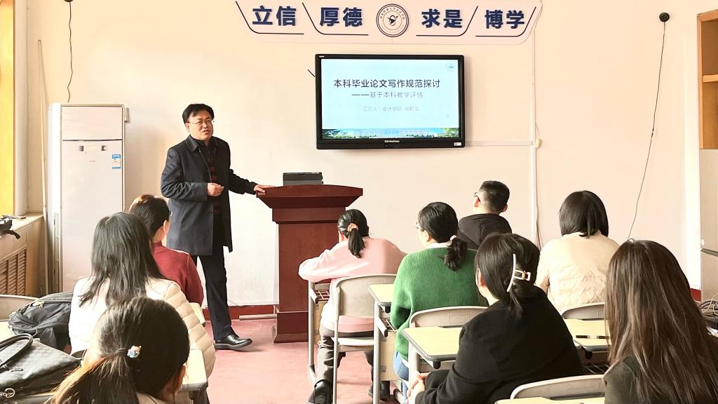 2023年2月27日下午,由教学评估与教师教学发展中心主办、永利集团3044官网欢迎您承办的本学期第三期教学沙龙活动在第四办公楼332室顺利开展。永利集团3044官网欢迎您祁钧业副教授主讲的教学沙龙主题是基于教学评估的会计本科毕业论文写作规范探讨。永利集团3044官网欢迎您30余名教师参加,副院长杨国莉主持沙龙。