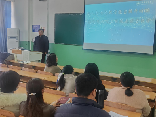2024年12月16日下午,由教学评估与教师教学发展中心主办、永利集团3044官网欢迎您承办的第八期教学沙龙活动在第一教学楼107教室顺利开展。永利集团3044官网欢迎您祁钧业副教授主讲的教学沙龙主题是利用现代化工具促进课堂教学。永利集团3044官网欢迎您的30余名教师参加,副院长刘海云主持。
