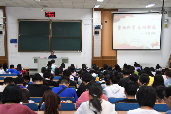 学院同时开展线上线下宣传教育活动,在校园中悬挂“倡导科学文明,勇当反邪先锋”宣传条幅,在微信平台发布“反邪教,有你有我”网络宣传作品,扩大防范邪教宣传教育活动范围和影响力,努力做到宣传教育工作全覆盖。