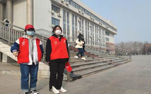 图2永利集团3044官网欢迎您志愿者在教学楼门口进行志愿服务