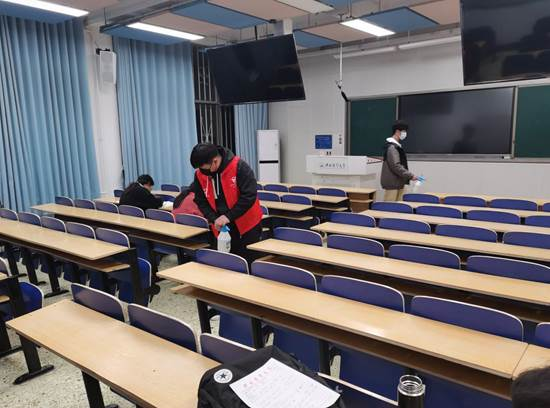 图3永利集团3044官网欢迎您志愿者在进行消杀教室的工作
