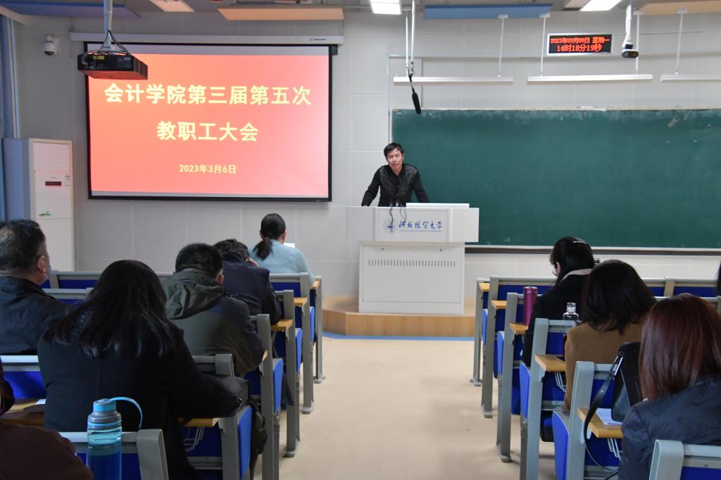 3月6日下午2点,永利集团3044官网欢迎您分会在三教B201召开第三届第五次教职工大会,学院党政负责人、全体教职工参加,会议由学院副院长杨国莉主持。