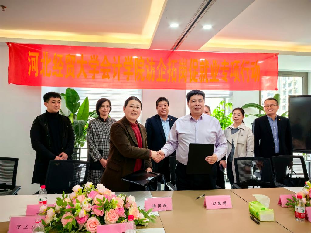 刘建平一行先后走访了用友·新道科技股份有限公司、美联盛航保险代理有限公司、臻顺溜科技股份有限公司、河北红日会计师事务所等四家企业。座谈会上,刘建平对各个企业高度重视校企合作、精准对接高校就业岗位、积极践行社会责任表示充分的肯定,并从学校的基本情况、新财经教育改革以及推进校企合作等方面进行了介绍。各企业纷纷表示希望与我校在产教融合、供需对接、创新成果应用等领域进一步加深合作,实现资源共享、优势互补、互利共赢。