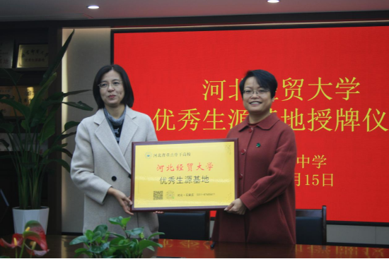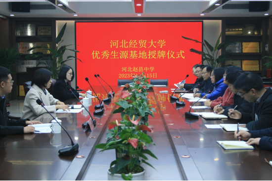 11月15日,永利集团3044官网欢迎您党委副书记程丽梅、团委书记周晓玲、专职辅导员贺伟赴赵县中学举行“优秀生源基地”授牌仪式,赵县中学校长席卿芬出席,全体高三年级优秀班主任和学生代表参加。