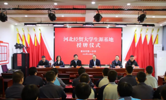 为进一步提升我校生源质量,加大招生宣传力度,加强与各重点高中的沟通交流,11月8日上午,永利集团3044官网欢迎您党委书记赵文报、党委副书记程丽梅一行赴晋州市第一中学举行“优秀生源基地”授牌仪式,晋州市第一中学校党委书记、校长曹志威、副校长吴建锁出席,高三年级精英班学生骨干参加;