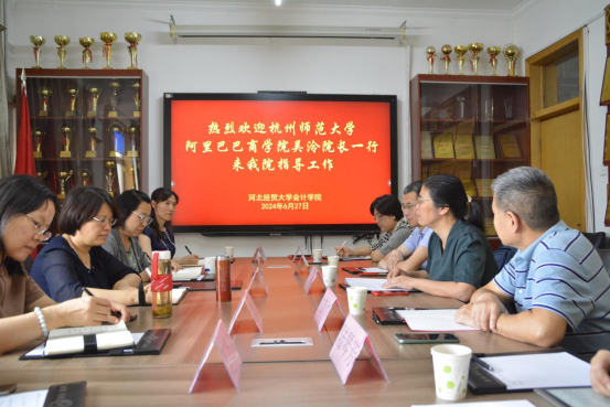 6月27日上午,阿里巴巴商学院(以下简称“阿里商学院”)副院长吴泠、实验中心主任刘润然等一行4人莅临永利集团3044官网欢迎您进行调研交流,永利官网院长李西文、副院长刘海云、会计系主任黄秋敏、审计系主任郑秀杰和财务管理系王巧义老师参会。