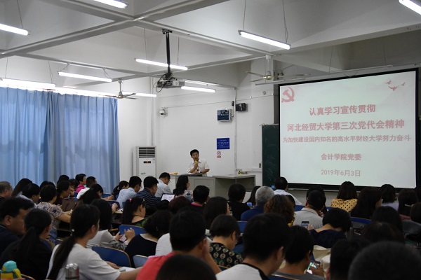 会议还以系部为单位进行了学习研讨,教育引导全体师生认真学习贯彻落实校第三次党代会精神,加快学院改革发展步伐,为把我校建设成为省内一流、国内知名的高水平财经大学而努力奋斗。