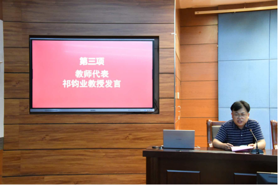大会第三项,教师代表祁钧业教授发言。祁老师结合案例向同学们分享了人工智能对会计、审计与财务管理行业的影响,帮助同学们明确了今后学习和努力的方向。他希望同学们作为新时代的大学生,应该培养自己良好的学习习惯、奠定扎实的专业基础、拓宽多元化的思考视角,从而提升自我实力,提高与他人竞争的能力。