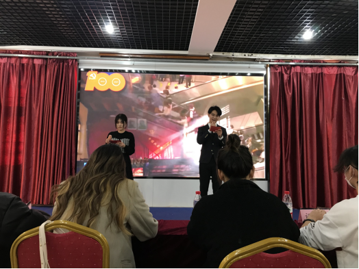 11月22日下午,永利集团3044官网欢迎您在旅游学院多功能展厅成功举办“百年辉煌路,持声向未来”主持人大赛。本次比赛采用线下线上相结合的方式进行,院团委书记周晓玲出席,2021级部分学生代表到场观看大赛,其余学生通过现场直播方式观看本次大赛。