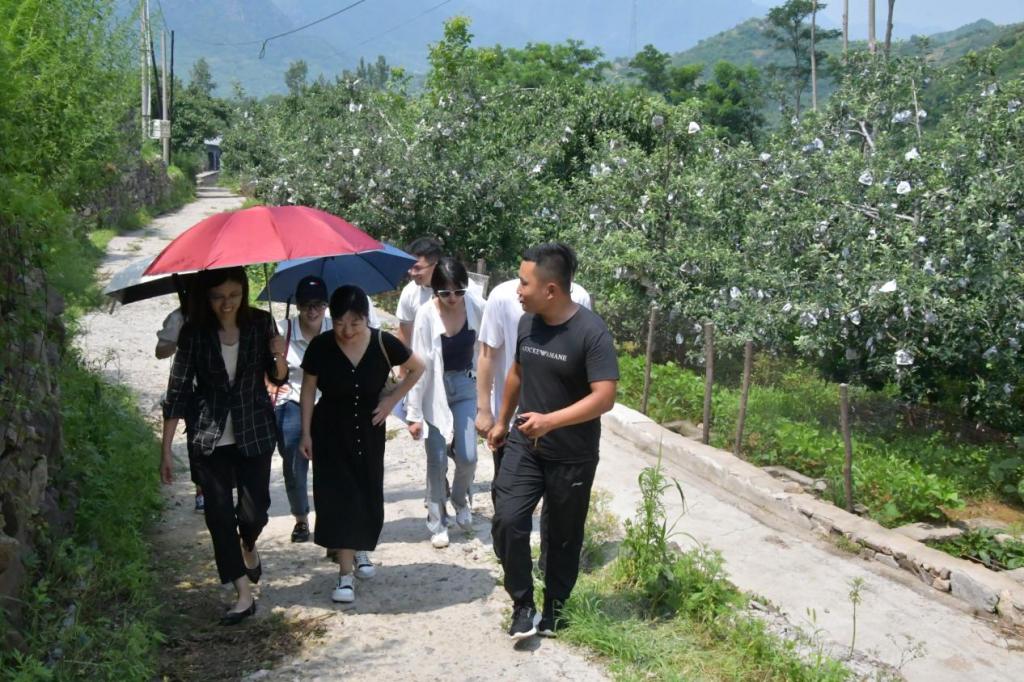 座谈结束后,实践团参观了头道窝铺村村容村貌、果树种植基地,感受十八大以来党和国家的方针政策在促进农村发展方面所带来的巨大改观,感悟脱贫攻坚的历史性成就。当地党委充分调动青年才干深入基层开展工作,用创新性的思维带动当地发展,走出一条属于自己的致富道路。