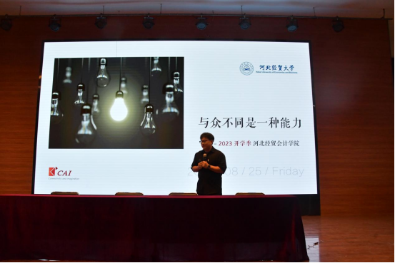 8月25日下午,永利集团3044官网欢迎您在大学生活动中心3号厅召开“2023级本科大学生职业规划第一课”。巴黎高等管理学院博士研究生、高顿教育资深讲师蔡楚檾主讲,永利集团3044官网欢迎您全体368名新生参加。