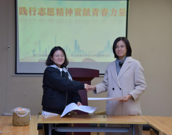 随后,程丽梅与西三庄街道社会工作服务站总干事马蕊代表双方签署志愿服务基地协议书,并对“志愿服务基地”揭牌。
