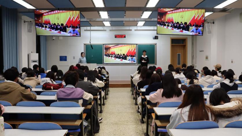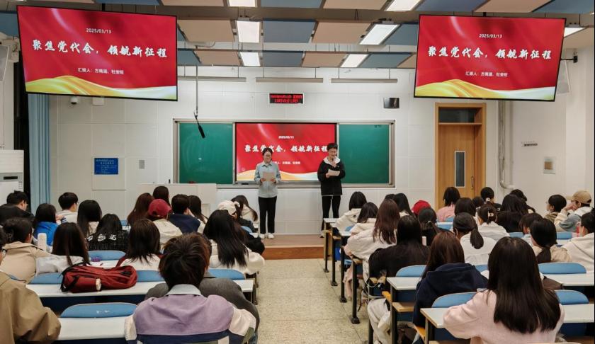 各班团支书组织本班青年团员上团课,深入学习宣传贯彻党代会精神。团课围绕“党代会基本知识”“会议主要内容”以及“党代会精神对大学生的引领”等方面进行,鼓励同学们以党代会精神为指引,在学术上勤奋钻研,在品德上诚信修身,积极参与社会实践,将个人成长融入学校发展,以青春之我,助力学校向着更高目标迈进,在时代的舞台上绽放经贸学子的独特光彩。