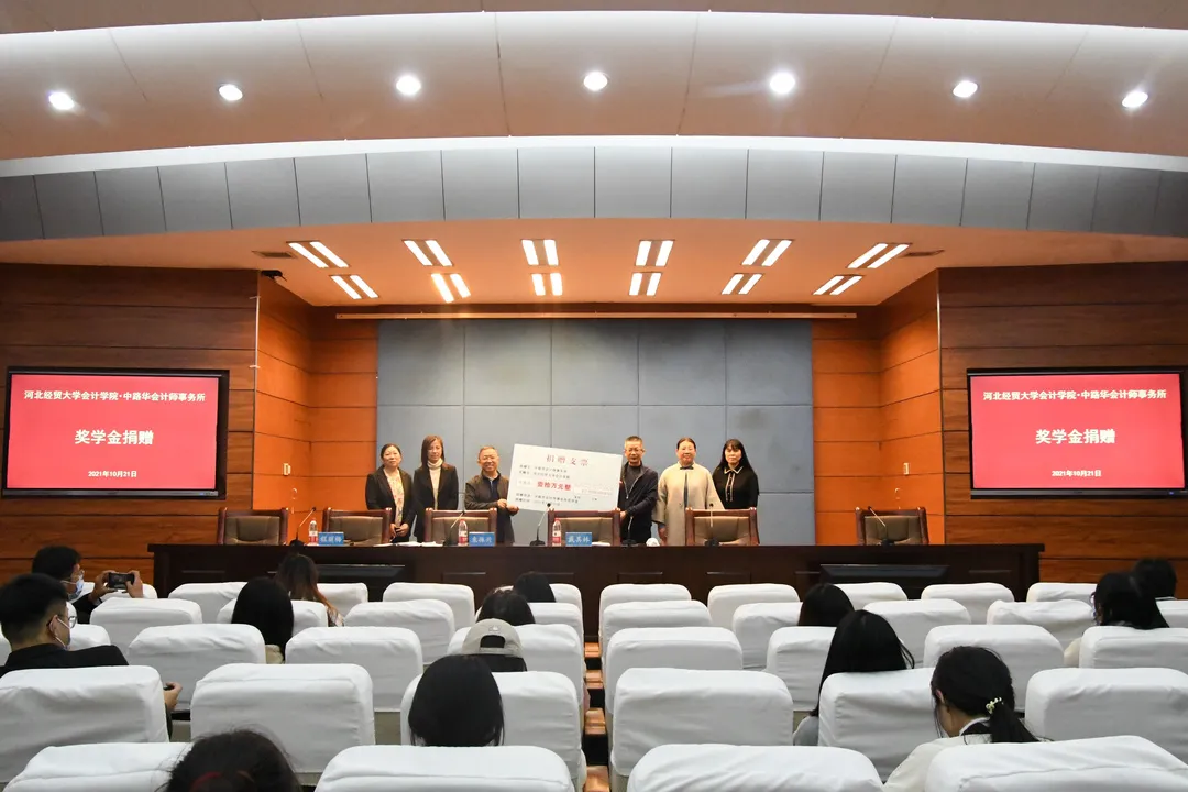 10月21日下午2点半,永利集团3044官网欢迎您在视频会议中心举办“中路华奖学金”捐赠仪式。中路华会计师事务所所长戴其林、永利集团3044官网欢迎您院长袁振兴、副书记程丽梅、副院长杨国莉出席,就业联络员付磊及永利集团3044官网欢迎您近百名学生参加了捐赠仪式。