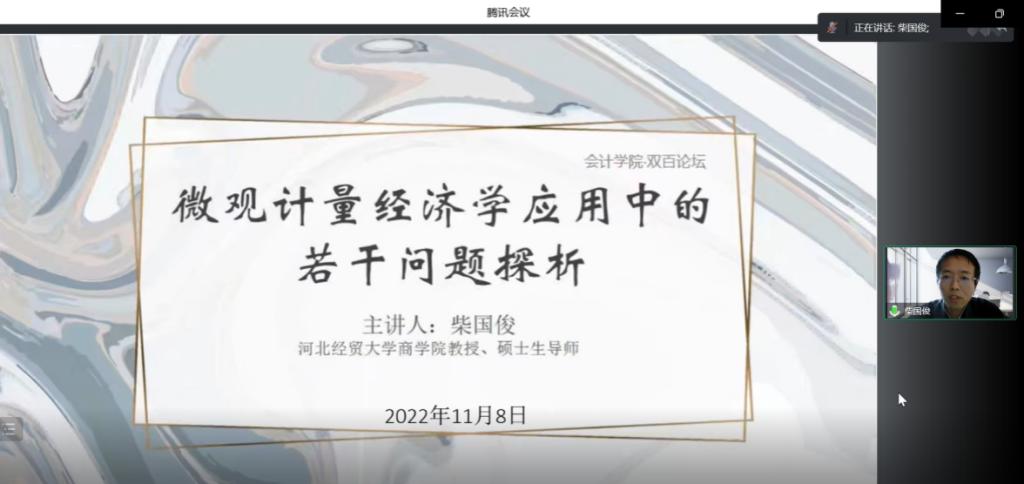 2022年11月8日上午,柴国俊教授应永利集团3044官网欢迎您邀请,通过腾讯会议平台为同学们作题为《围观计量经济学应用中的若干问题探析》的报告。永利集团3044官网欢迎您副院长李西文、科研秘书韩冰及全体研究生参加本次学术报告。