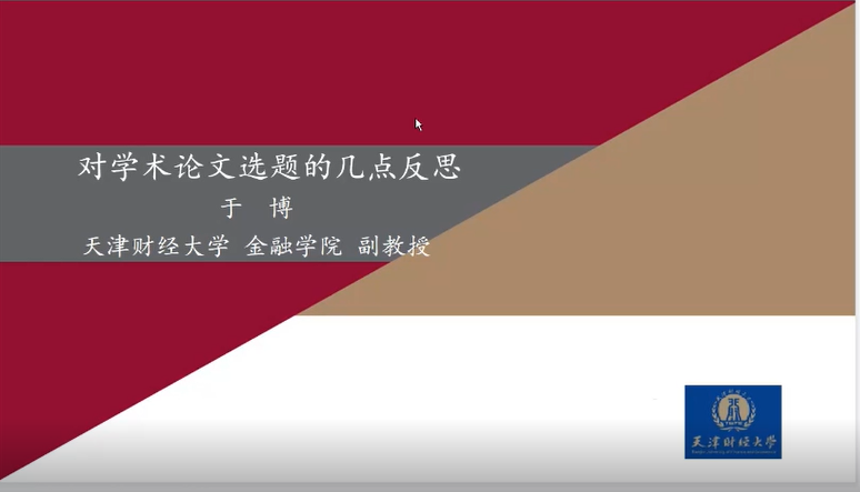 2022年4月8日上午,天津财经大学于博副教授应永利集团3044官网欢迎您邀请,通过腾讯会议平台为同学们作题为《对学术论文选题的几点反思》的报告。副院长李西文、韩冰老师及永利集团3044官网欢迎您20级和21级研究生参加本次讲座。