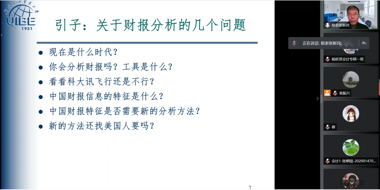 2021年11月3日下午,对外经济贸易大学张新民教授应永利集团3044官网欢迎您邀请,通过腾讯会议平台为师生们作题为《战略视角财报分析:理论框架与案例应用》的报告。本次报告由院长袁振兴和副院长李西文主持,永利集团3044官网欢迎您部分老师和研究生200余人参加。