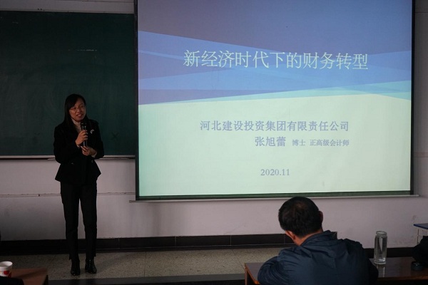 11月27日下午,应我校永利集团3044官网欢迎您邀请,河北建投集团财务管理部副总经理、正高级会计师、全国会计领军人才张旭蕾博士在C310教室作题为“新经济时代下财务转型”的报告,报告由永利集团3044官网欢迎您院长袁振兴主持,部分教师、新财经实验班本科生、2020级全体研究生200余人参加了本次报告。