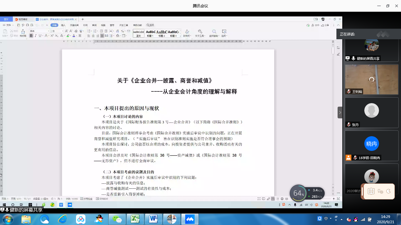 2020年9月21日下午,中国人民大学商学院耿建新教授应永利集团3044官网欢迎您邀请,通过腾讯会议平台为同学们作题为《企业合并——披露、商誉和减值》的报告。副院长李西文及永利集团3044官网欢迎您全体研究生共200余人参加本次讲座。