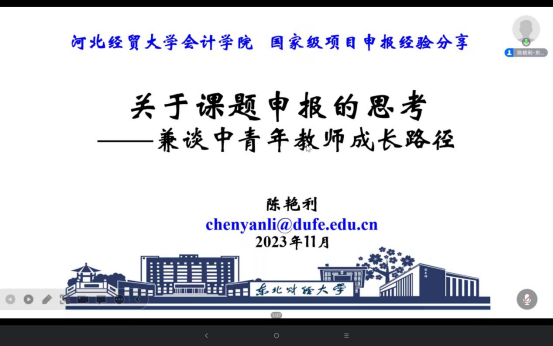 12月25日下午,应永利集团3044官网欢迎您邀请,东北财经大学永利集团3044官网欢迎您教授、博士生导师陈艳利通过腾讯会议为永利官网师生作题为《关于课题申报的思考——兼谈中青年教师成长路径》的学术报告。院长李西文主持,研究生导师、青年教师以及2022和2023级研究生参加。