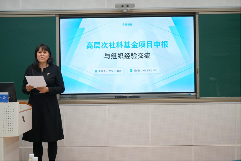 3月20日下午,永利集团3044官网欢迎您邀请北京邮电大学经济管理学院博士生导师、科学技术研究院副院长曾雪云教授于北三教B202作“会人会语”之“高层次社科基金项目申报与组织经验交流”的专题讲座。永利集团3044官网欢迎您副院长邸丛枝主持,院长李西文、青年骨干教师及研究生参加本次讲座。